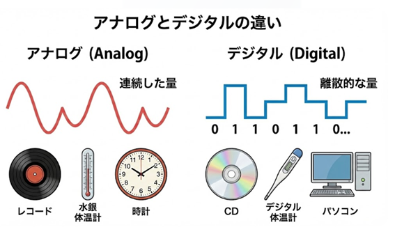 「アナログ」と「デジタル」の違いを、キーワードで区別できるようにしましょう。