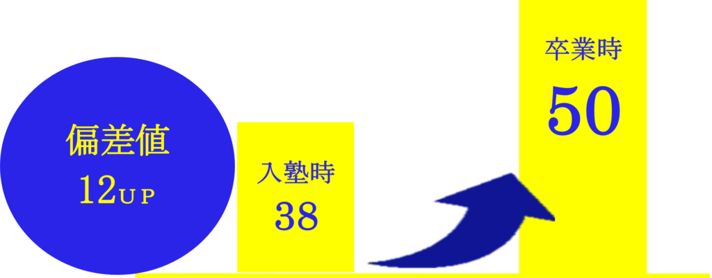 中学準備講座から始めた生徒の入塾時と卒業時の成績比較